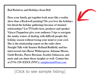 Did you know that many radio/TV producers and journalists search for prospective guests online? That’s why in addition to being in our print and email publications, we’ll also include you for a full year on RTIROnline.com. Through the site, interested media will be able to contact you directly.